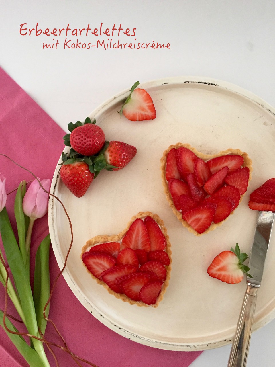 Ich zeig euch heute eine Idee für den Valentinstag, die sicherlich gut ankommt. Und zwar gibt es Tartelettes mit einer Kokos-Milchreiscreme in einem Kokosmürbeteig mit frischen Erdbeeren. Klingt doch ganz lecker. Und wer mag schon keinen frischen Milchreis und da Kokosnuss und Erdbeere perfekt zusammen passen, ist das Rezept auch perfekt für den Valentinstag geeignet. Euer Michael.