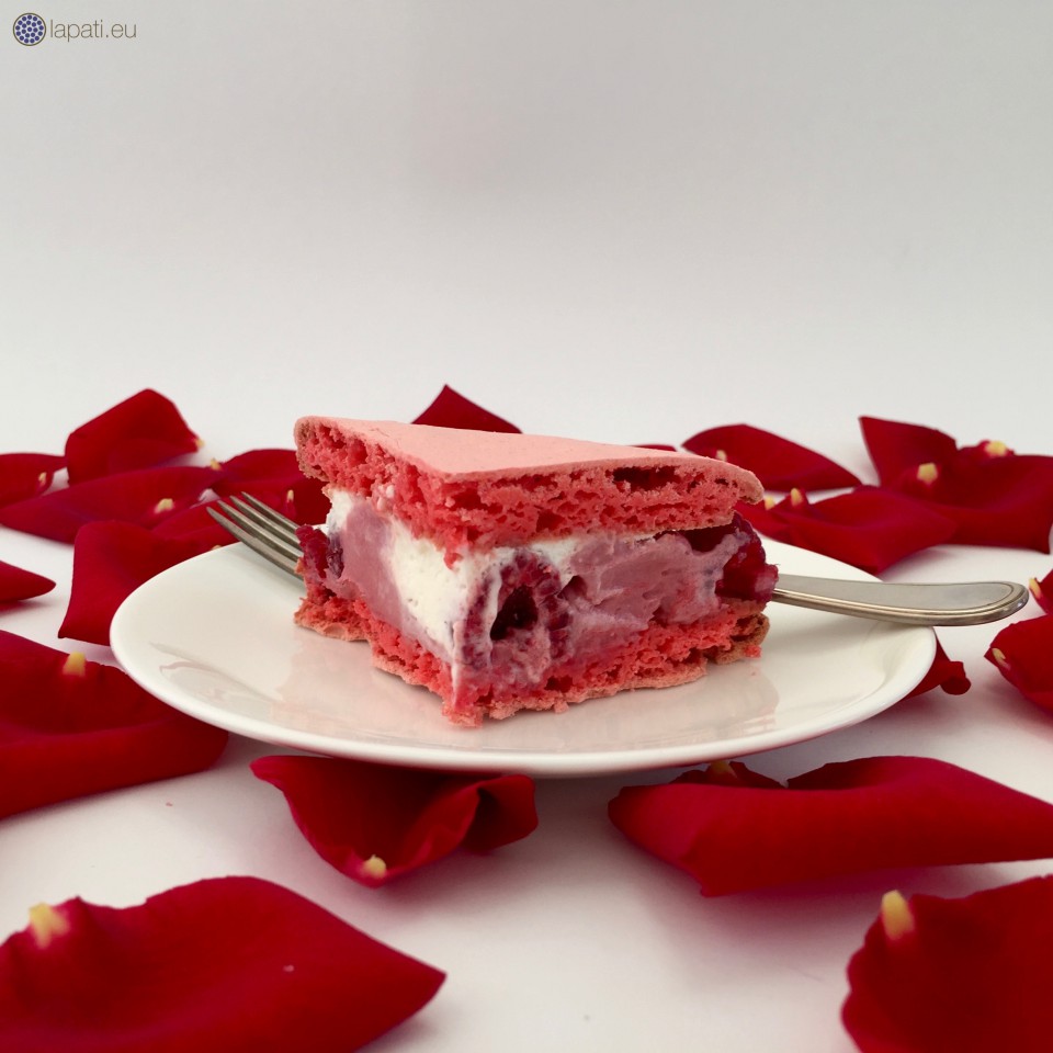 „Ein Hauch von Rosenwasser veredelt diese Macaron Torte zum Valentinstag.“