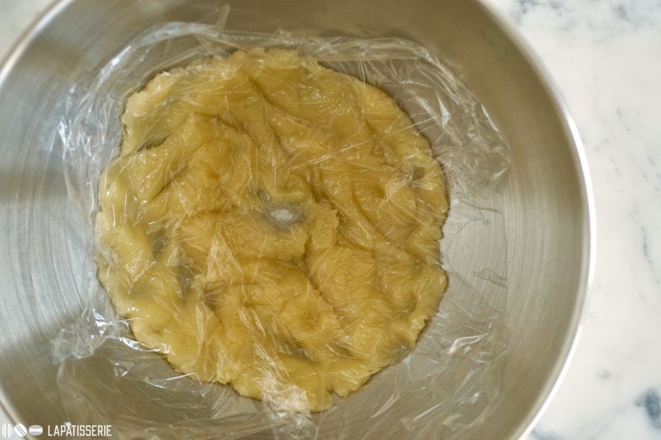 - Die Masse in eine Rührmaschine geben und auf Körpertemperatur abkühlen lassen.