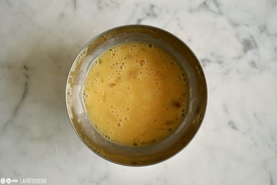 - Anschließend die Eier langsam unter die Masse rühren, da sich bei zu schnellem Einrühren Klumpen bilden können.