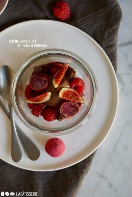 Heute gibt’s ein einfaches Dessert für euch mit einer Schokoladencreme, einigen frischen Feigen und feinste Himbeertrüffel.