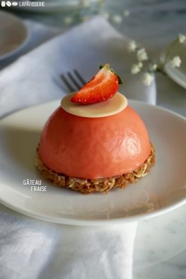 - Kleines Törtchen mit Erdbeermousse und Knusper.