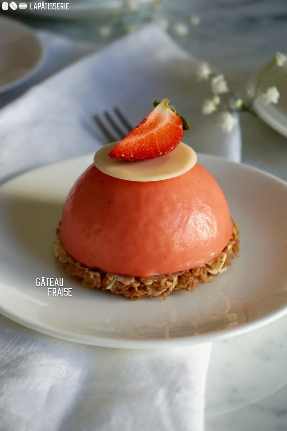 - 5 Blatt Gelatine | 100 g Erdbeerpüree | 50 g Zucker | 100 g Glukosesirup | 60 g Sahne | 100 g weiße SchokoladeGelatine einweichen. Erdbeerpüree, Zucker und Glukose aufkochen, Sahne einrühren und über weiße Schokolade gießen. Gelatine zugeben und mixen.
