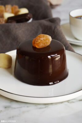 Heute habe ich ein wunderbares Törtchen mit kandiertem Ingwer, einer luftigen Schokoladenmousse und einem feinem Schokoladenbiskuit für euch.