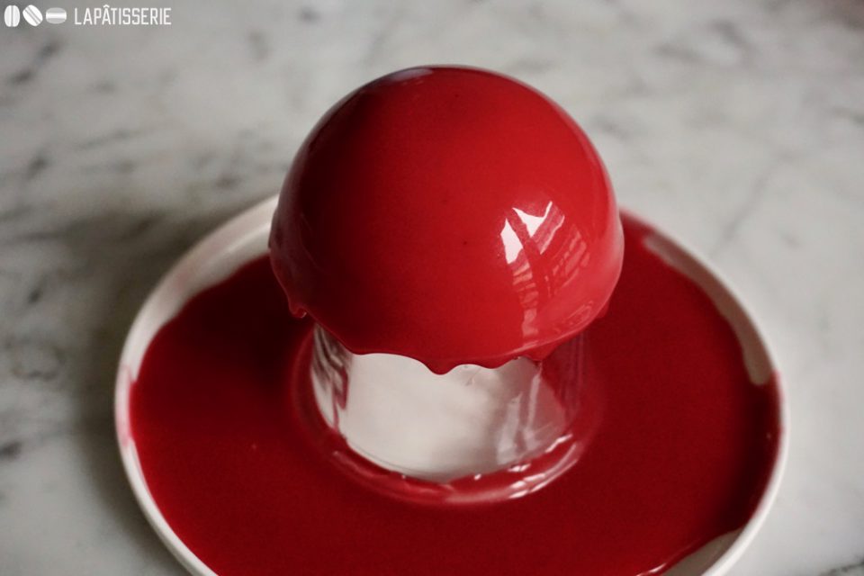 - 30 g Wasser | 30 g Himbeerpüree | 75 g Zucker | 30 g Sahne | 50 g weiße Schokolade | 2 Blatt GelatineDie Gelatine in kaltem Wasser einweichen. Wasser, Himbeerpüree, Zucker in einem Topf aufkochen. Sahne einrühren.Alles über die weiße Schokolade gießen. Eingeweichte Gelatine zufügen und mit dem Stabmixer pürieren. Die Glasur im Kühlschrank erkalten lassen.