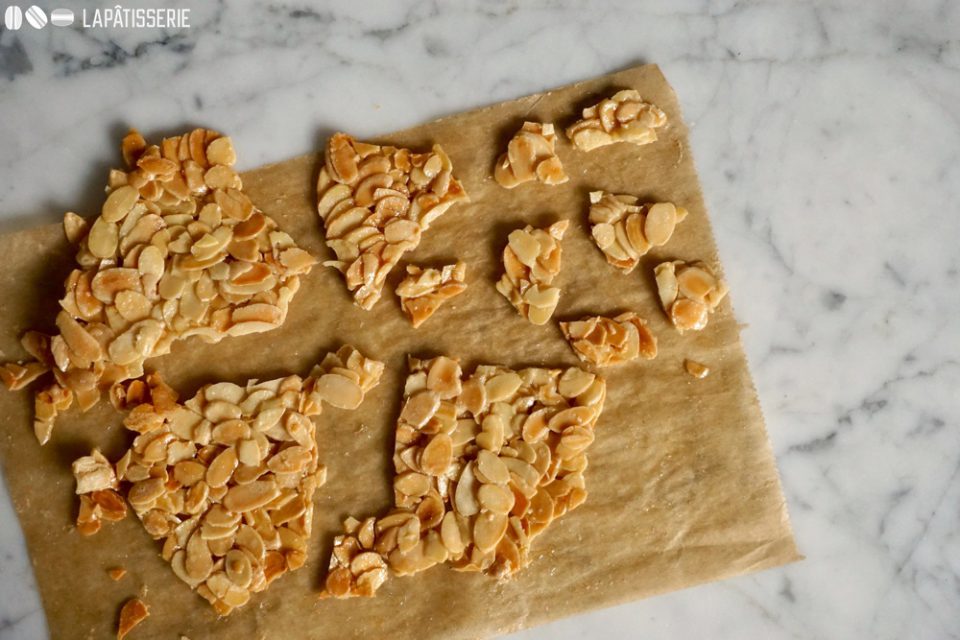 - 100 g Mandeln, gehobelt | 20 g Zucker | 20 g WasserIn einem Topf das Wasser mit dem Zucker aufkochen. Die gehobelten Mandeln in eine Schüssel geben und mit heißen Zuckersirup übergießen. Anschließend vermengen.Die Mandeln auf ein Backblech geben und gleichmäßig verteilen. Die Mandeln ca. 15 Minuten bei 170°C karamellisieren.