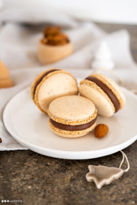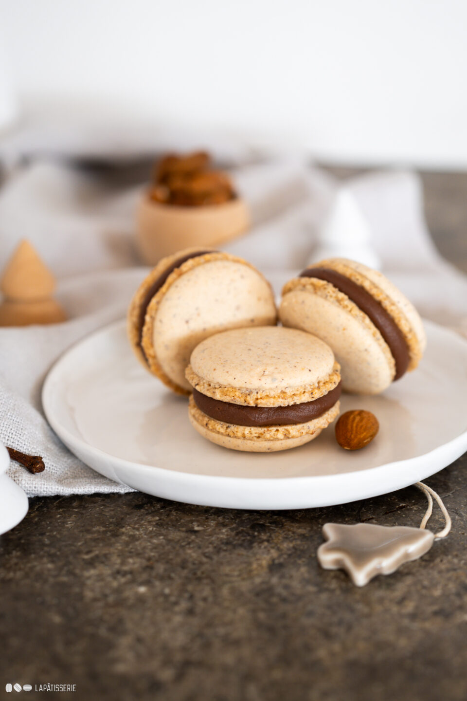 - Zarte Macarons gefüllt mit cremiger Zimtganache und crunchy Mandelpraliné