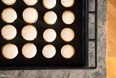 - Macarons für ca. 12 bis 14 Minuten bei 160°C backen. Abkühlen lassen.