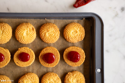 - Klassisches Spritzgebäck mit Sauerkirschfüllung und dunkler Schokolade