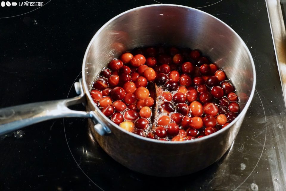 - 50 g Wasser | 50 g Zucker | 150 g Cranberries, frisch | 50 g Orangensaft | 1 ZimtstangeDas Wasser zusammen mit dem Zucker in einem Topf aufkochen. Nun die frischen Cranberries, den Orangensaft und die Zimtstange zugeben und für 5 Minuten leicht köcheln lassen.Anschließend die Zimtstange entfernen und die Mischung mit einem Stabmixer glatt pürieren. Die Mischung zusätzlich durch ein Sieb passieren, damit restliche Schalenanteile entfernt werden.