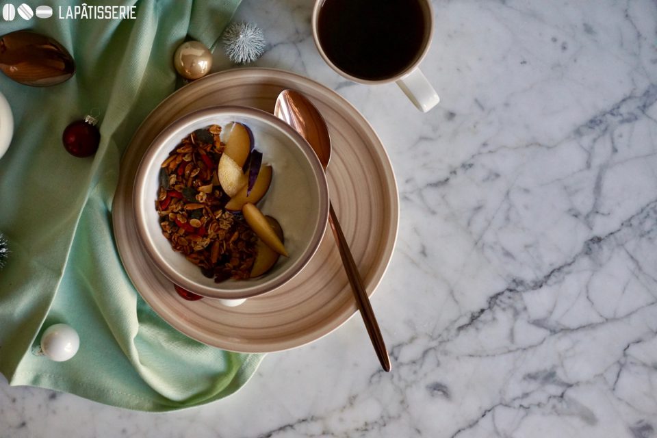 Das neue Jahr hat zwar noch nicht angefangen, allerdings dauert es auch nicht mehr lange bis wir 2020 begrüßen können. Ein neues Jahr bedeutet in der Regel auch neue Vorsätze. Ich für meinen Teil mache mir nicht viel aus Vorsätzen. Ich halte Vorsätze für lästig, unrealistisch und letztlich ärgert man sich nur, wenn man das Vorgenommene nicht umsetzen kann. Stattdessen arbeite ich das ganze Jahr an mir. Aus kleinen Versuchen wird irgendwann Routine und das funktioniert für mich besser als Vorsätze, die ich mir am letzten Tag eines Jahres mache. Gesunde Ernährung steht immer ganz oben auf meiner Liste, möglichst viel selber machen, auf wenige fertige Produkte zurückgreifen müssen. So entstand auch meine Leidenschaft zum Granola backen. Früher hab ich mir Müslis im Supermarkt gekauft ohne groß auf Inhaltsstoffe zu achten. Irgendwann in den letzten Jahren haben ich angefangen Granola immer selbst zu backen. Mit den Zutaten auf die ich gerade Lust habe. Natürlich hat auch das Studium einen großen Einfluss auf diese Entwicklung. So ist jedes Granola anders. Und zudem sind meine hausgemachten Varianten allesamt günstiger als die Pendants aus dem Supermarkt, die allzu gerne voll mit Zucker sind.