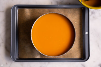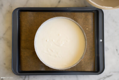 • Joghurtmousse in einen Tortenring (18cm) einfüllen.