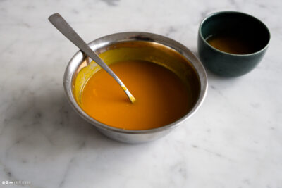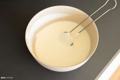 Gelatine in sehr kalten Wasser einweichen.