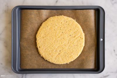 • Biskuit für ca. 8-10 Min. bei 200°C (Umluft) backen. Nach dem Backen vom Backblech entfernen und abkühlen lassen.