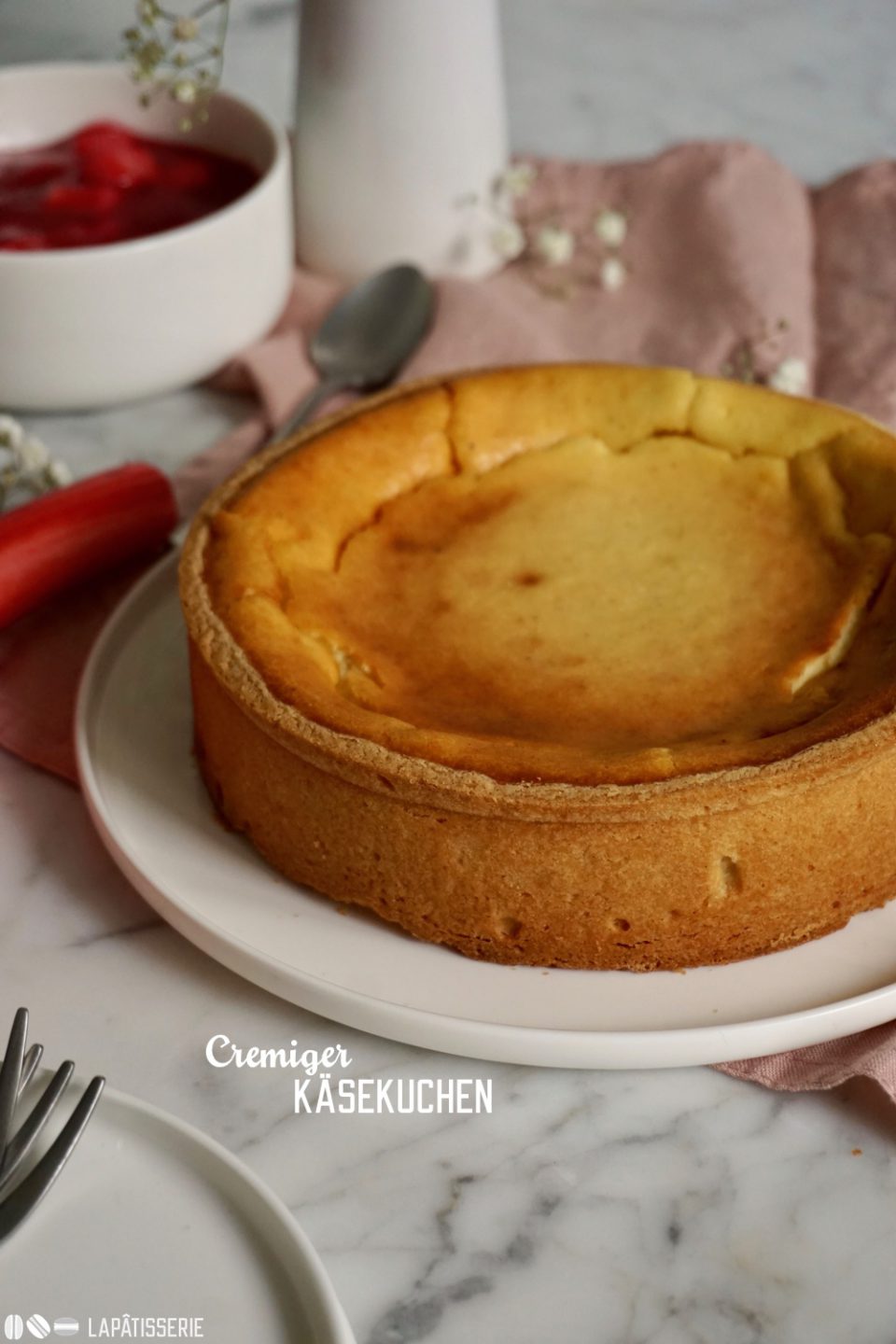 - Der cremigste Käsekuchen aller Zeiten mit feinem Rhabarberkompott.
