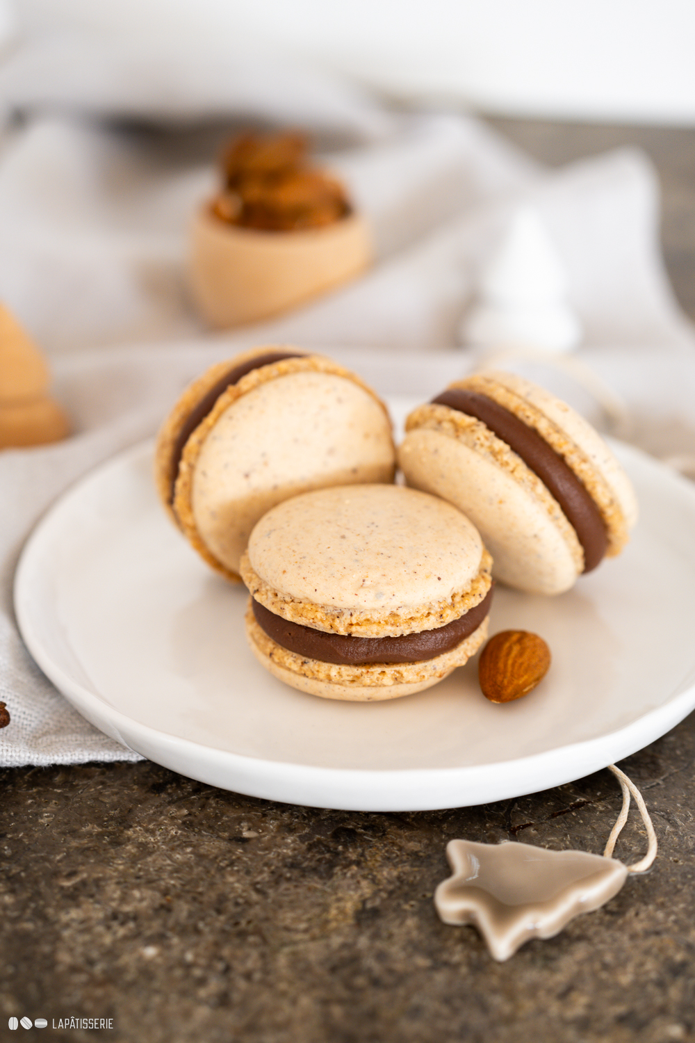Gebrannte-Mandel-Macarons 18. Dezember 2025 Schreibe einen Kommentar Zarte Macarons gefüllt mit cremiger Zimtganache und crunchy Mandelpraliné