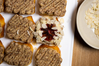 - Die Mandelbrioche für ca. 12 Minuten backen, bis die Oberfläche goldbraun ist.