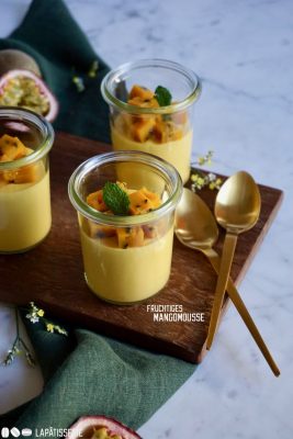 Für das frostige Winterwochende hab ich einige Desserts im Glas mit Mangomousse und Maracuja vorbereitet.
