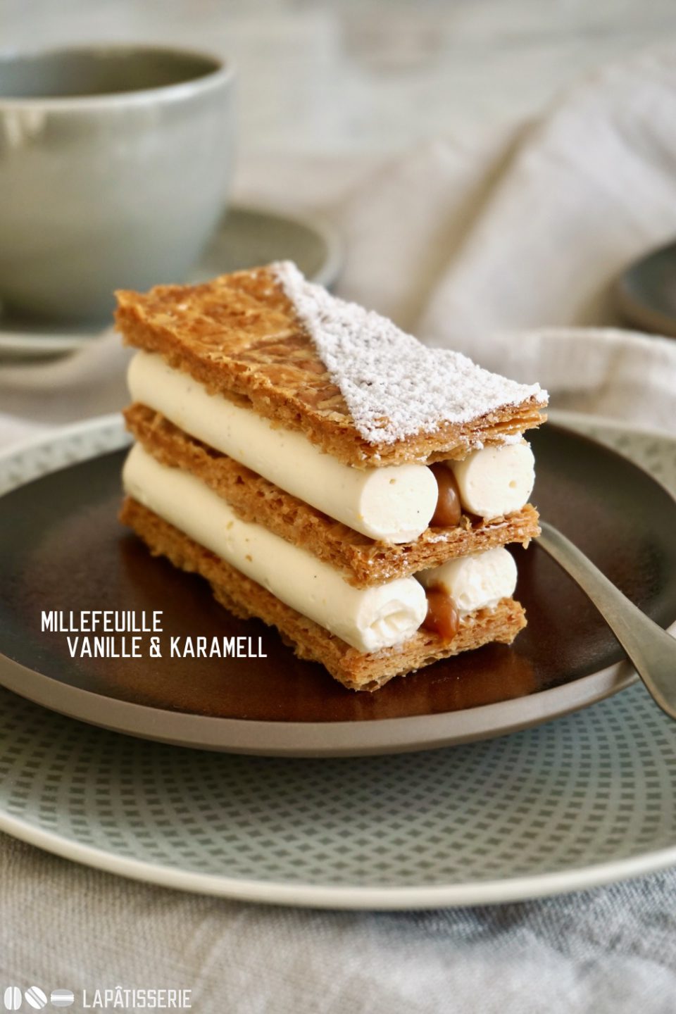 - Millefeuille: Feiner karamellisierter Blätterteig gefüllt mit Vanillecreme und Karamell