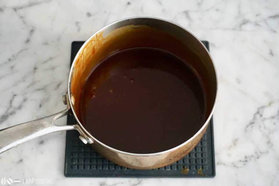 - 100 g Sahne | 15 g Honig | 1 Prise Salz | 100 g ZuckerDie Sahne zusammen mit dem Honig und einer Prise Salz aufkochen, vom Herd nehmen und beiseite stellen.In einem weiteren Topf den Zucker langsam karamellisieren, dabei jeweils ca. 25g karamellisieren und erst dann weiteren Zucker zugeben.Sobald der komplette Zucker karamellisiert ist die noch warme Sahne step-by-step einrühren, so dass keine Klumpen entstehen.Den fertigen Karamell in eine Schüssel geben und abkühlen lassen. Anschließend in einen Spritzbeutel füllen.