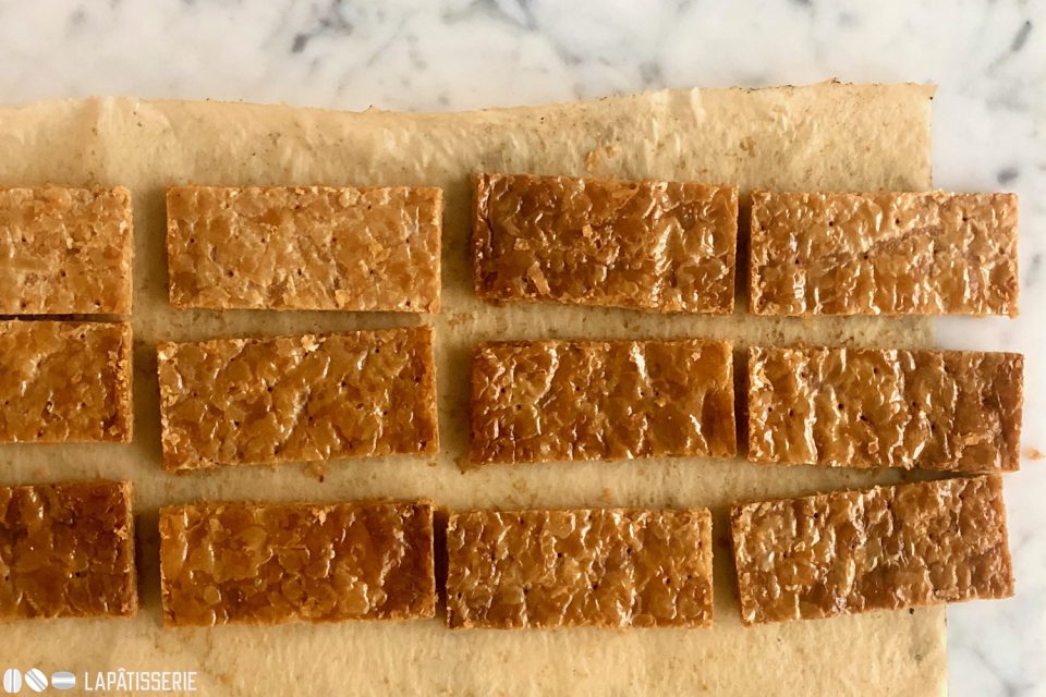 - Den gebackenen Blätterteig in Rechtecke mit den Maßen 10x3cm schneiden. Pro Millefeuille sind drei solcher Rechtecke notwendig.