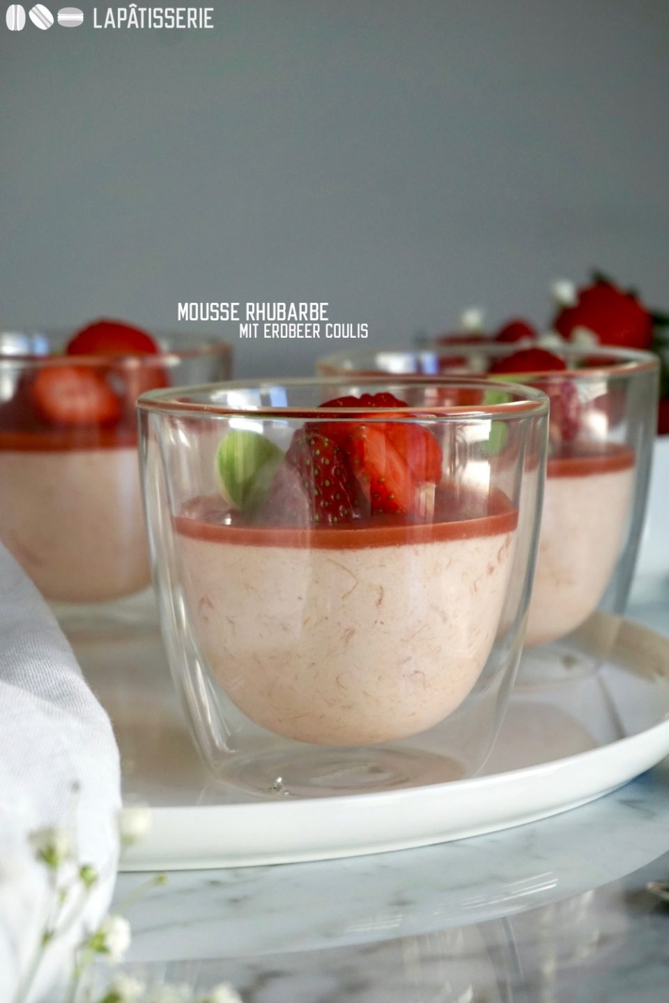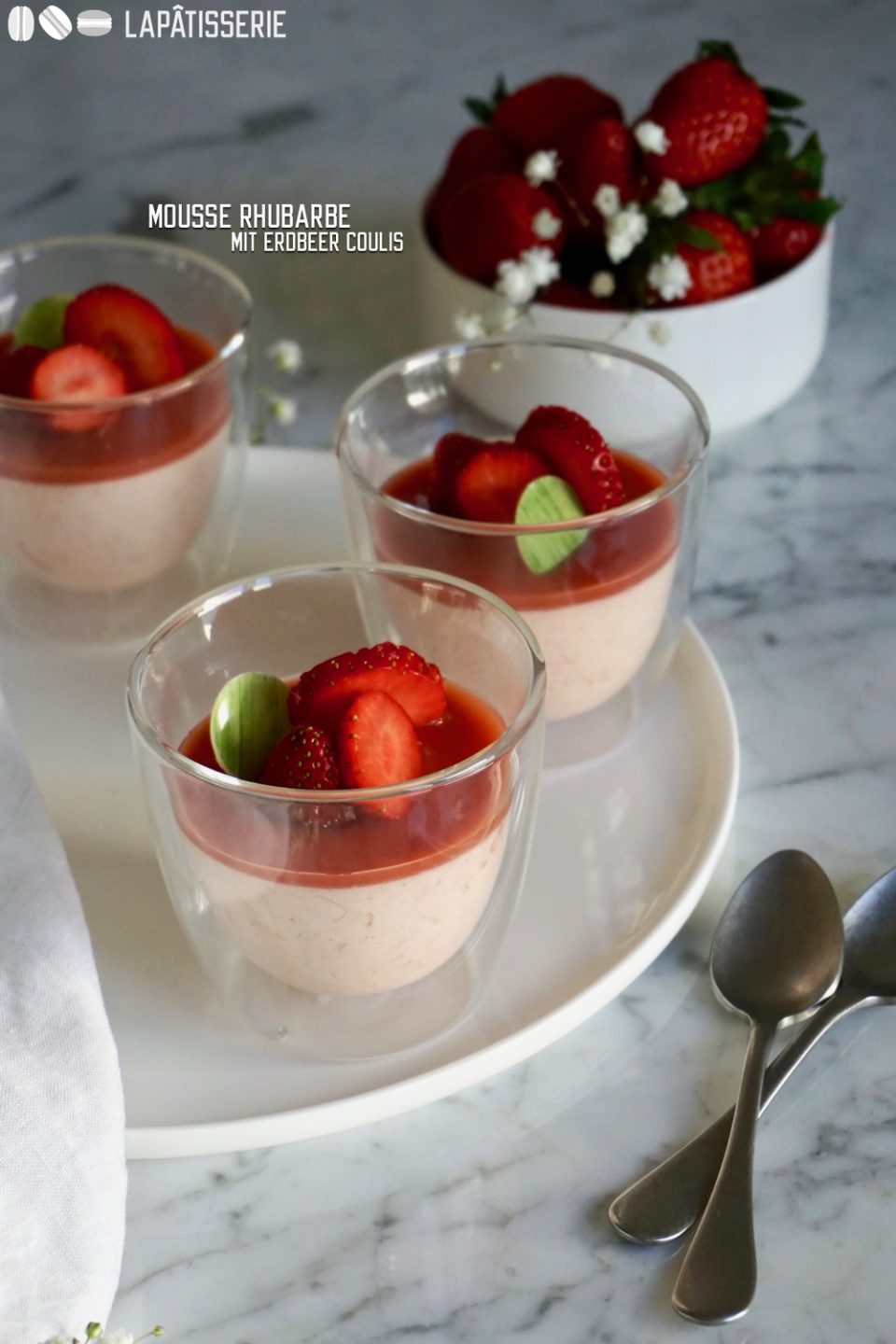 Mousse Rhubarbe mit Erdbeercoulis