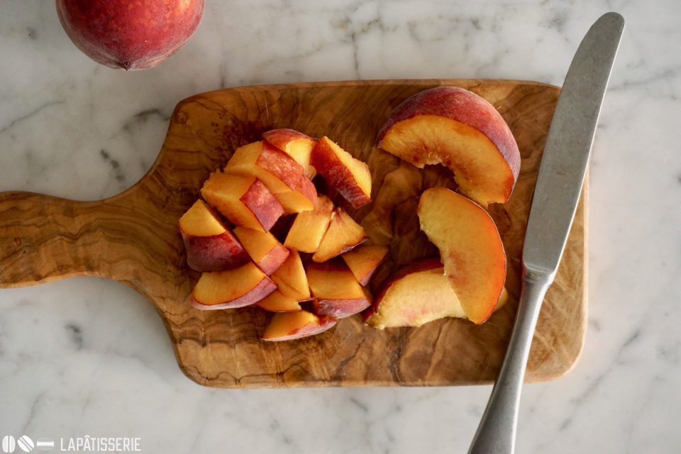 Die Pfirsiche waschen, entsteinen und in kleine Würfel schneiden. Mit einem Stabmixer oder in einem Standmixer pürieren.
