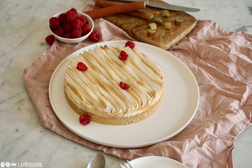 - Leckerer Kuchen für den Frühling mit rosarotem Rhabarber und süßem Baiser. Eine wahrlich perfekte Kombination.
