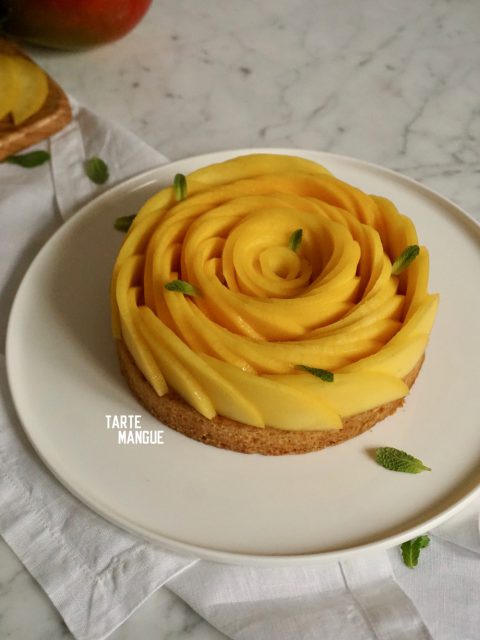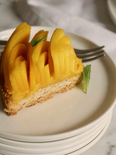 - Feinste Mangotarte mit lockerem Mandeldacquoise, fruchtiger Mangocreme und reifer Mango