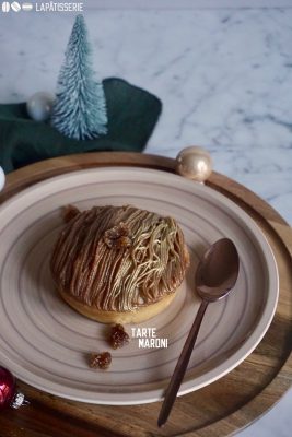 - Weihnachtsdessert 2018: Tarte Maroni mit geschlagener Zimtsahne, Kern aus Hagebutte und Maronencreme.