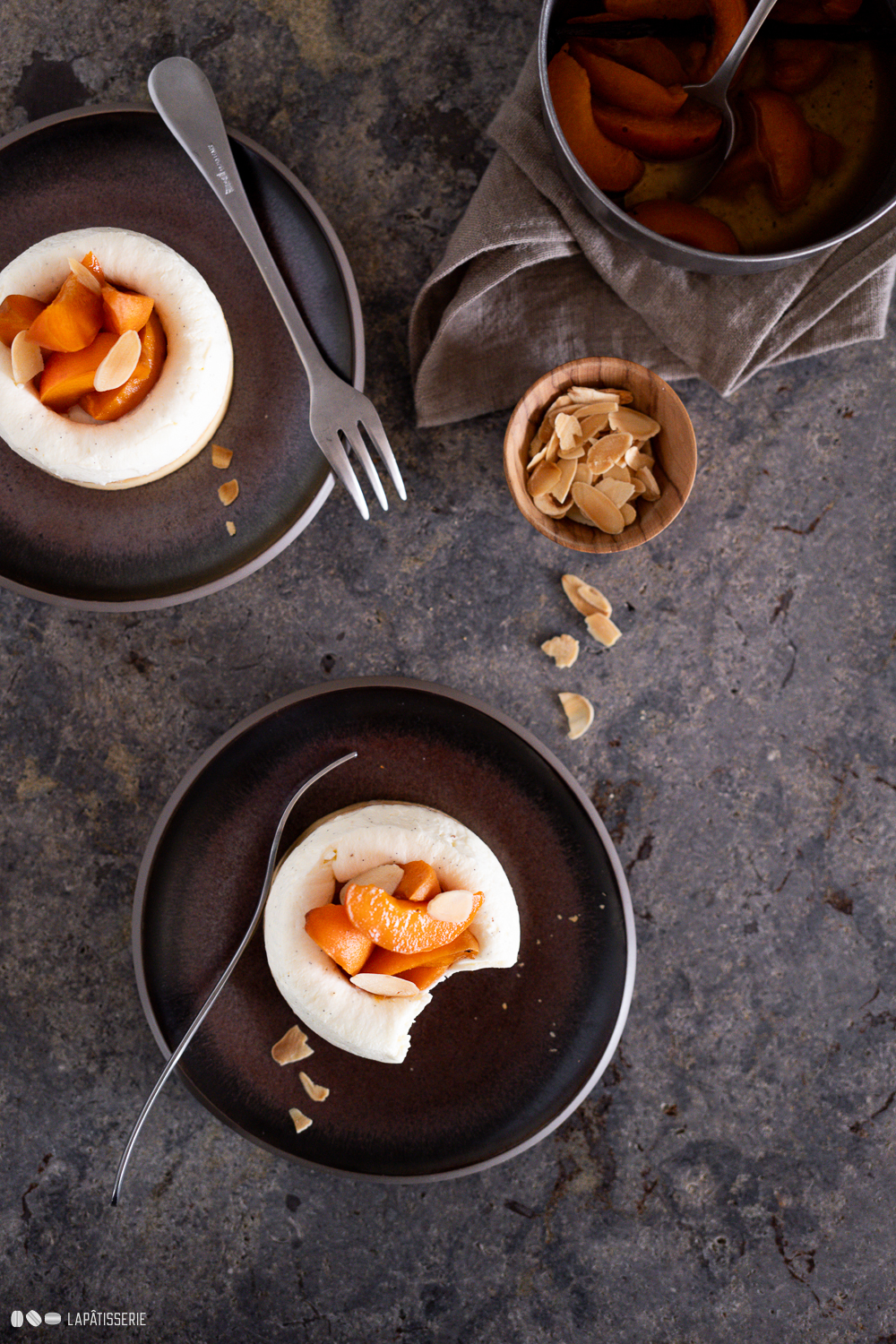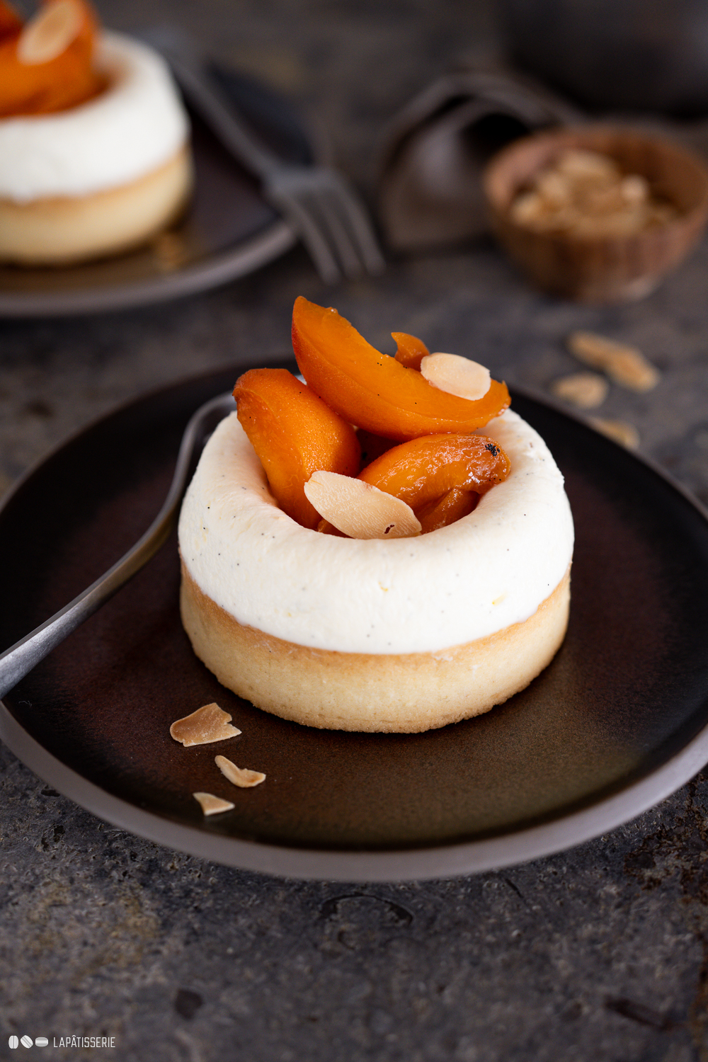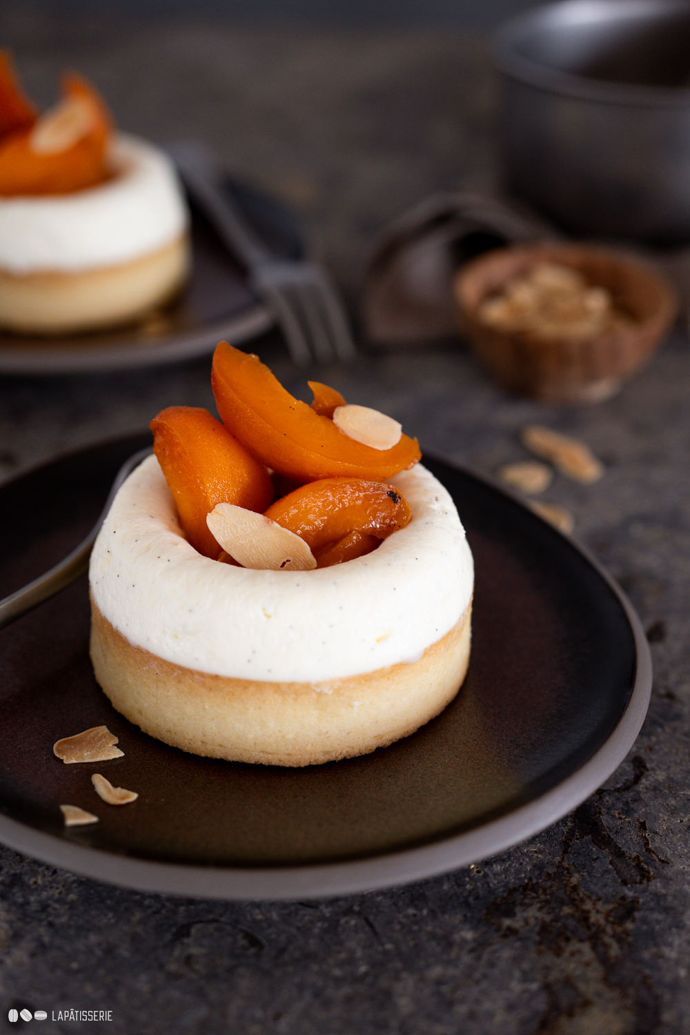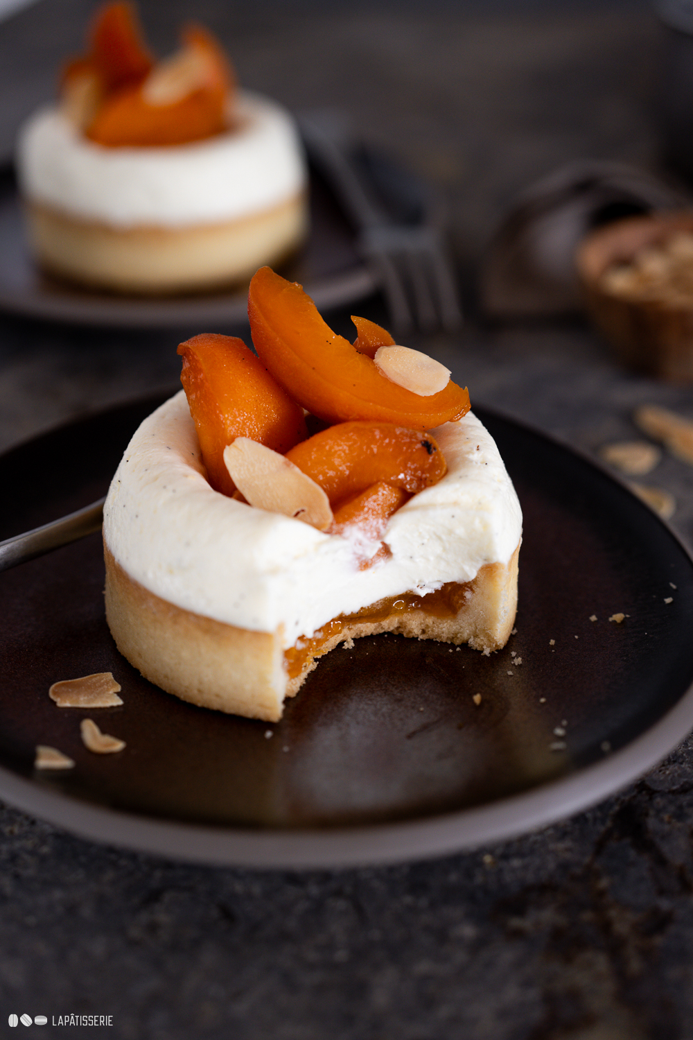 Sommerliche Tartelettes mit zartem Mürbeteig, säuerlichem Marillenkompott und süßer Vanillesahne