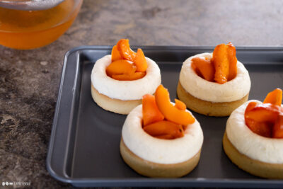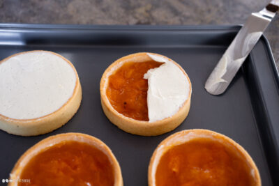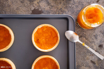 • Das Marillenkompott gleichmäßig auf die Tartelettes verteilen und verstreichen.