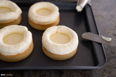 • Mit der restlichen Vanillesahne einen Kreis am Rand der Tartelettes aufspritzen.
