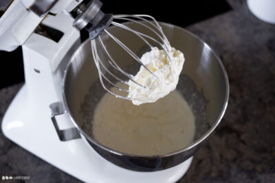 Alle Zutaten in eine Schüssel geben und bei mittlerer Geschwindigkeit mit einer Rührmaschine aufschlagen.
