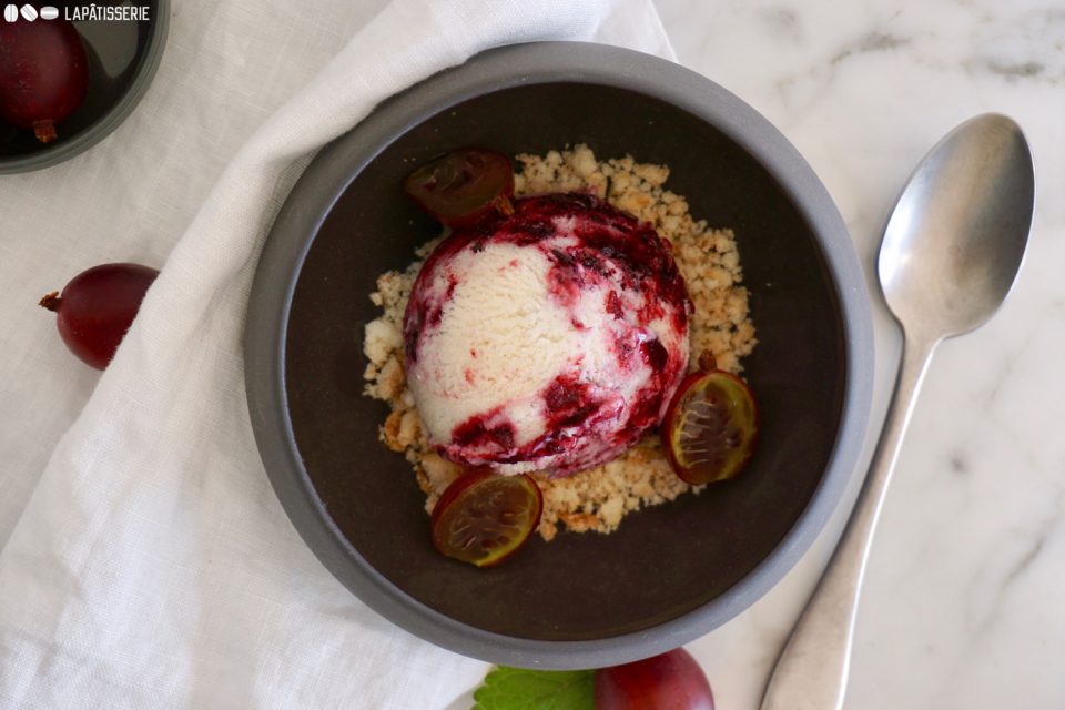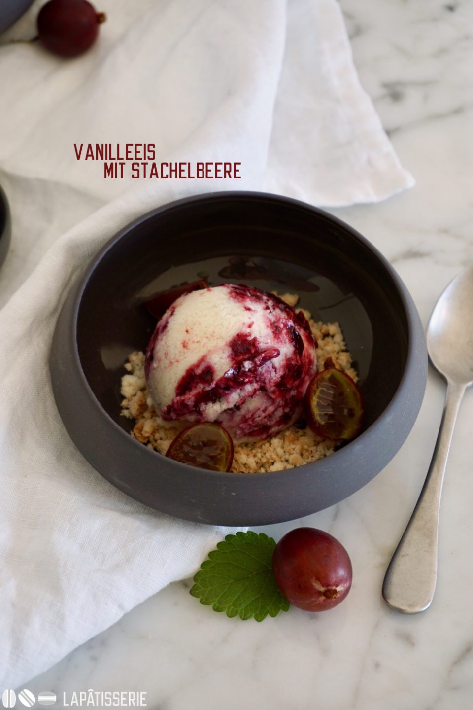 Heute habe ich euch aufgrund der momentanen Hitzewelle ein cremiges Vanilleeis mit Stachelbeeren mitgebracht.