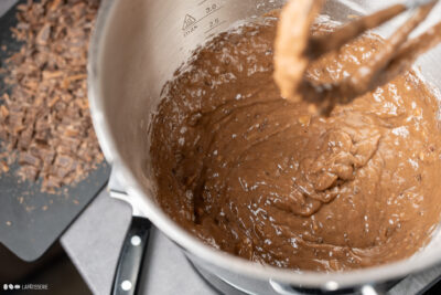 - 40 g Kakaonibs | 100 g dunkle Schokolade (min. 50%)Trockenen Zutaten unterrühren und zum Schluss gehackte Schokolade und Kakaonibs unterheben.