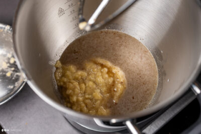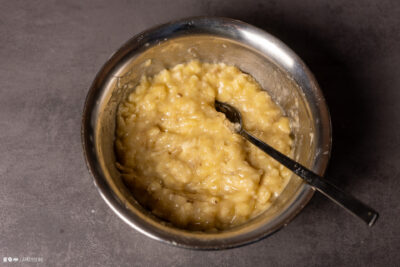- 330 g Bananen, geschältBananen mit einer Gabel fein zerdrücken.