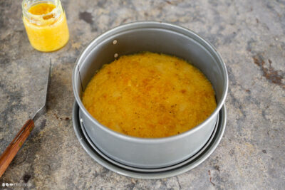 - Mandelcreme auf der Marmelade verteilen und verstreichen.